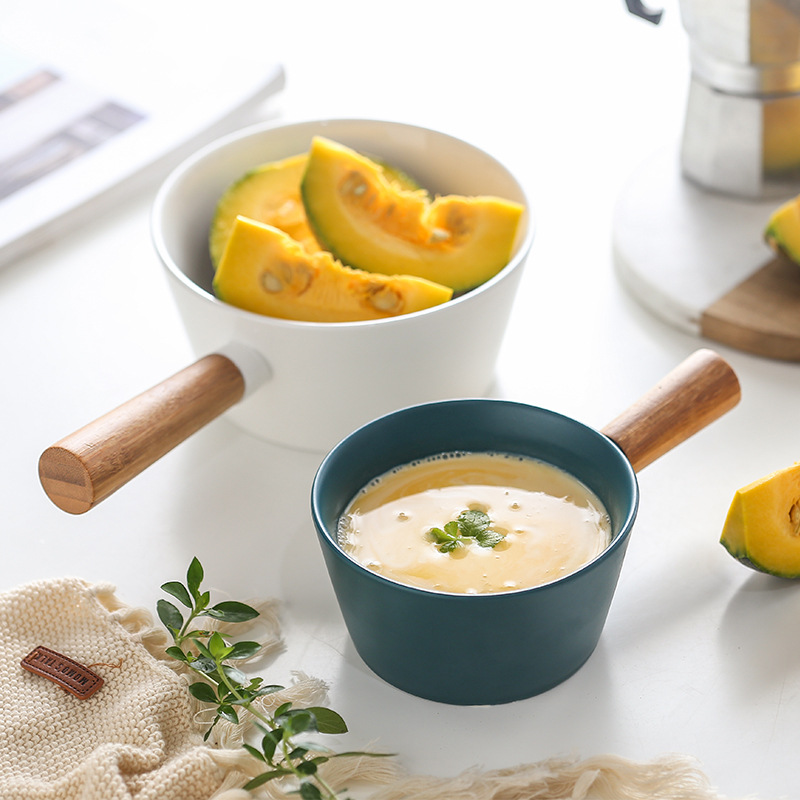 欧式创意竹木手柄沙拉碗意面碗西式水果碗甜点碗陶瓷餐具