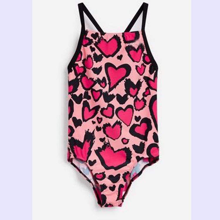 INS爆款女童儿童豹纹可调节肩带数码印花儿童连体比基尼泳衣