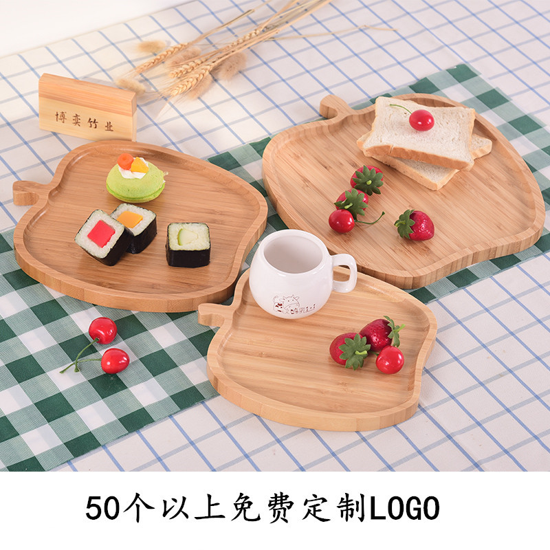 日式竹木托盘多功能家用水果寿司咖啡杯盘子竹木苹果型