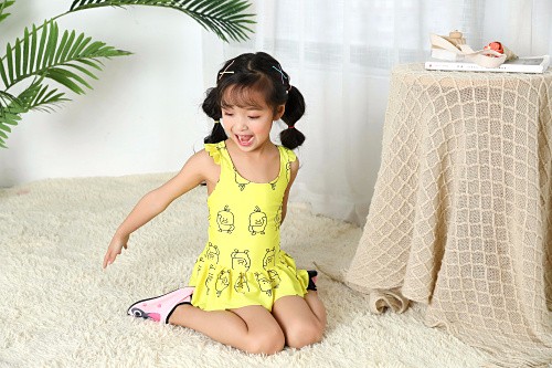 2020早春新品优惠儿童泳衣涤纶卡通5-7岁小黄鸭
