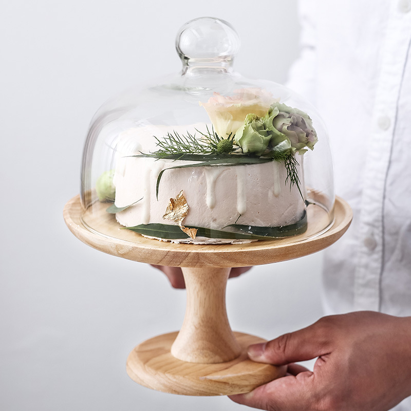 木质高脚蛋糕盘 玻璃罩 盘子带盖水果甜品台展示托盘拍照道具婚庆