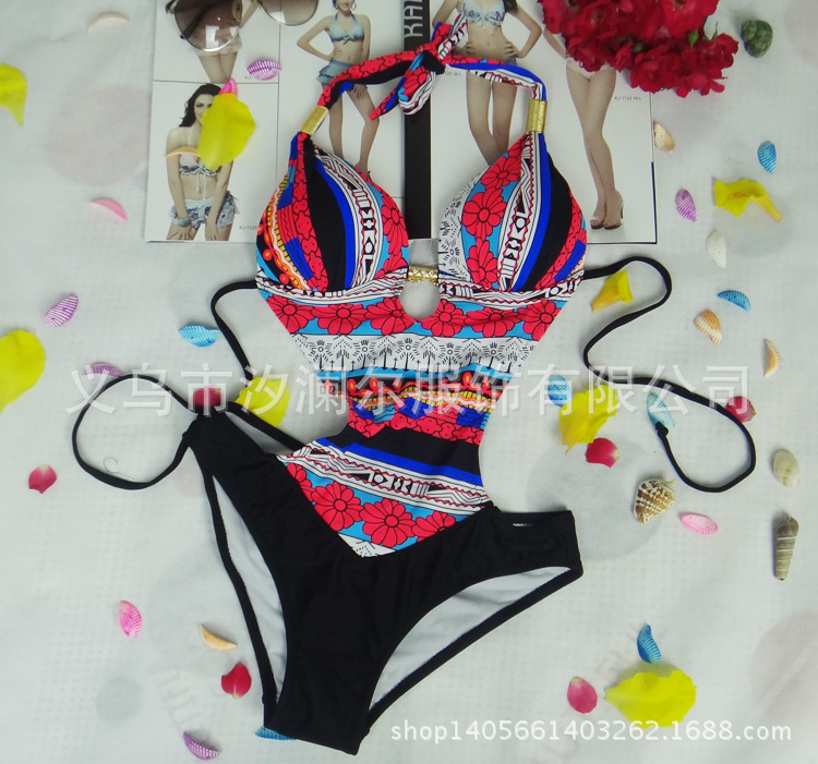 连体泳衣欧码外贸波西米亚独家爆款复古印花女士比基尼L0015#