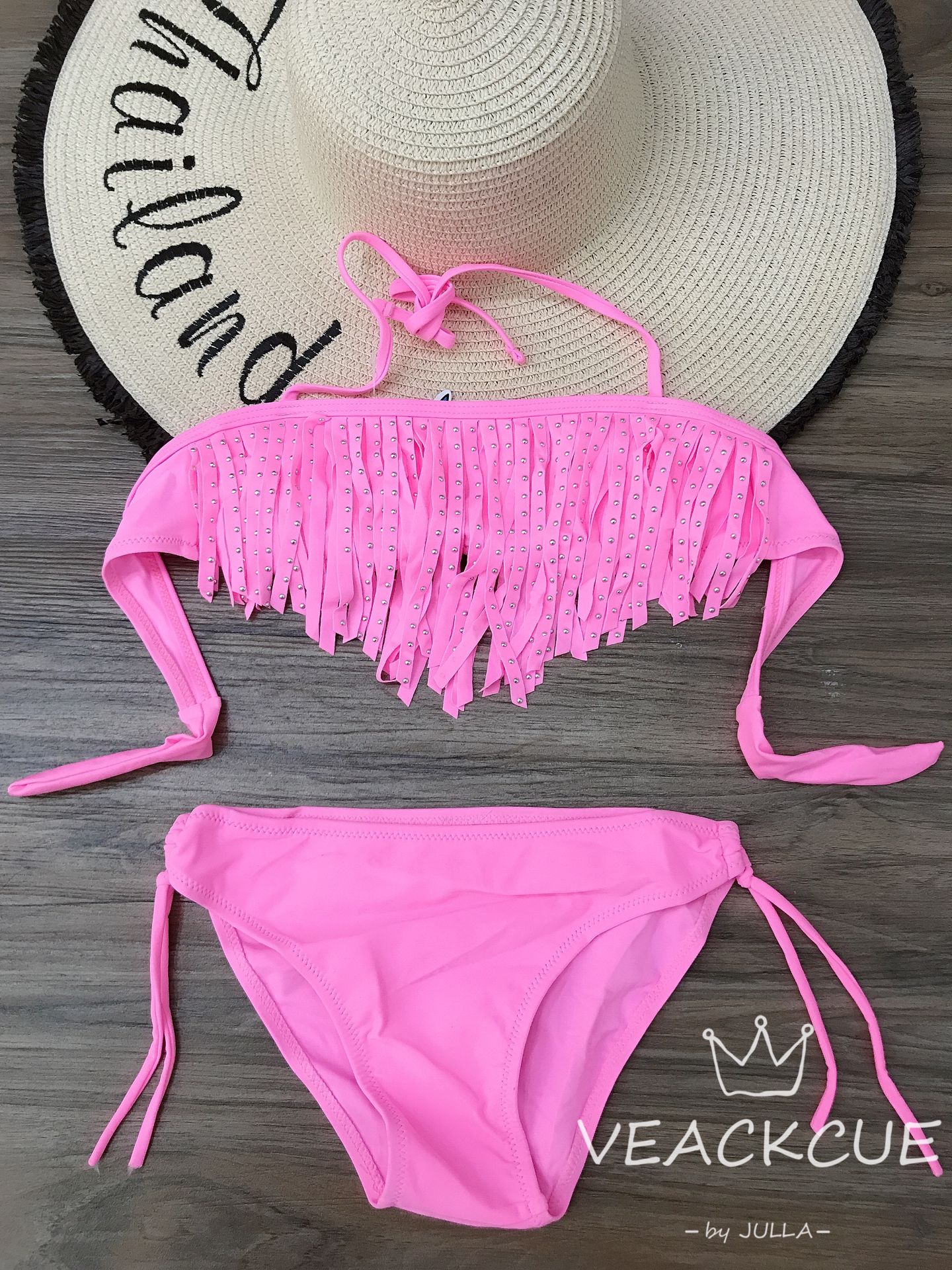 外贸儿童比基尼流苏贴钻分体女童游泳衣 大童泳装大尺码工厂店