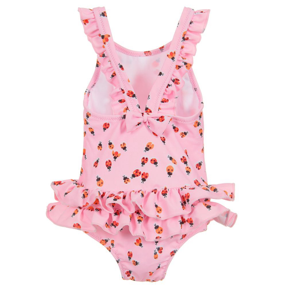 INS爆款热搜款儿童女童瓢虫玫红粉红连体游泳衣