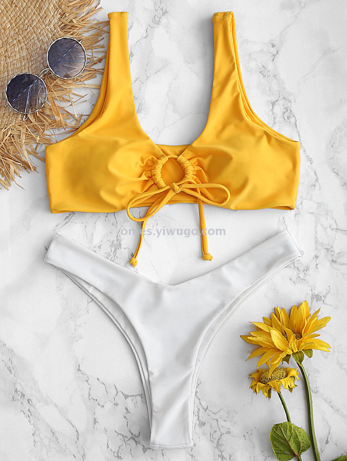 泳衣新款纯色比基尼欧美爆款圆环bikini性感女士分体泳衣