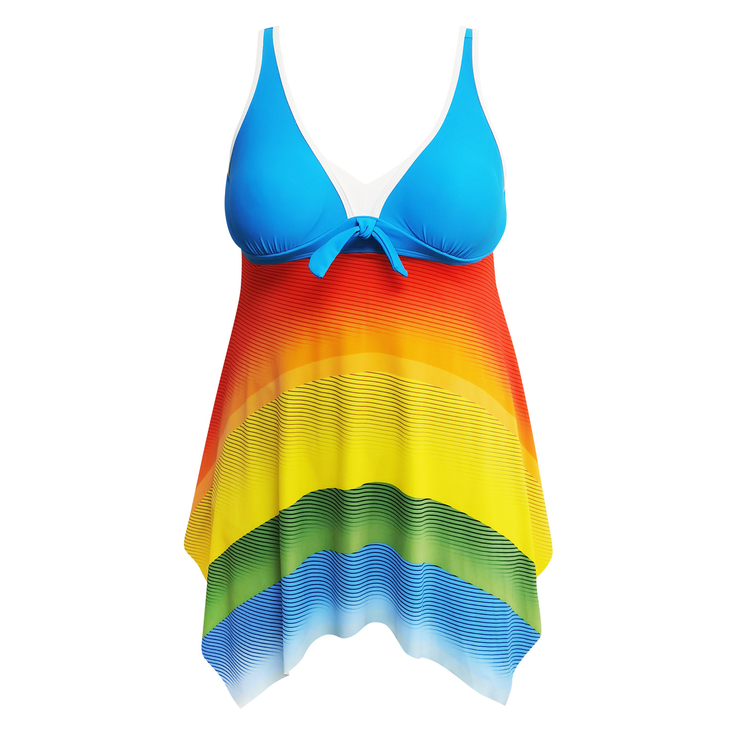 2021年欧美新款数码印花彩虹色高腰分体加肥加大女泳衣大码两件套