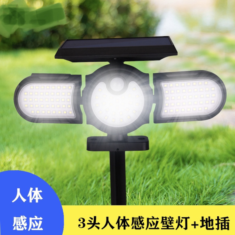 太阳能圆形草坪灯地插灯LED防水户外庭院灯三头智能人体感应路灯