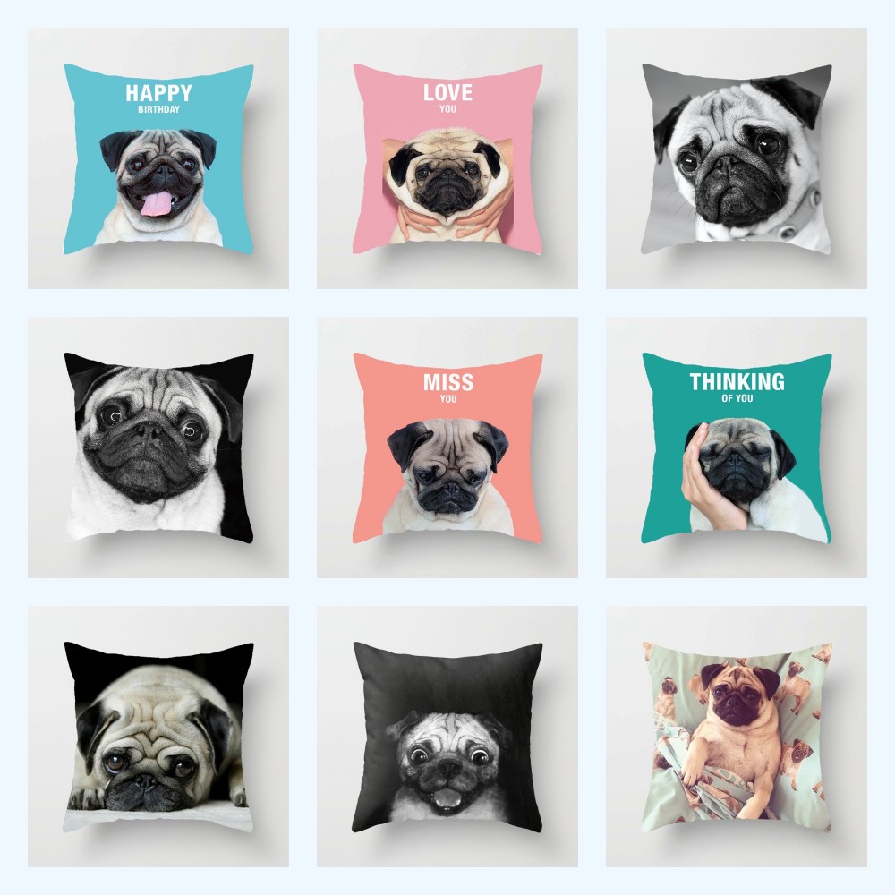 创意糖果色问候八哥巴哥犬狗狗抱枕套汽车沙发靠垫生日礼物靠枕