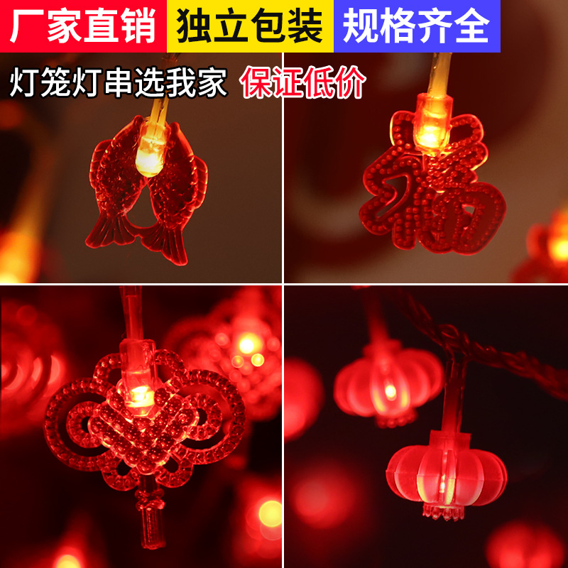 厂家直供LED彩灯小灯串红灯笼中国结元宵过新年春节装饰电池闪灯