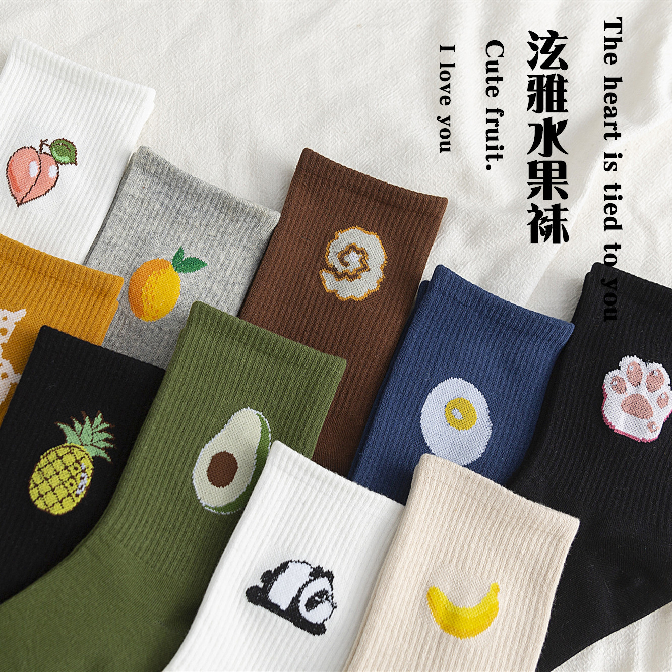 秋季新款泫雅水果堆堆袜男女糖果色卡通中筒棉质袜子网红运动ins
