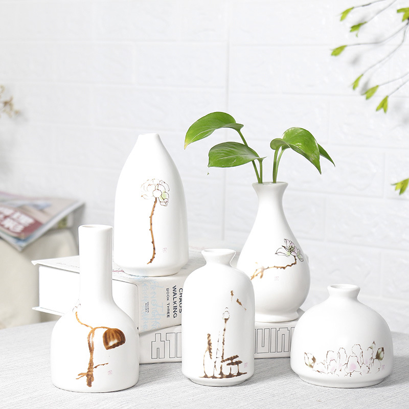 手绘花瓶干花装饰品摆件客厅插花北欧水培中式餐桌禅意陶瓷小花瓶