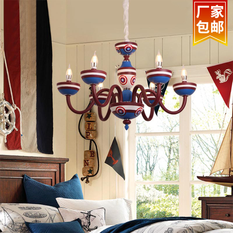 儿童房吊灯美国队长创意卡通地中海卧室灯北欧护眼男孩女孩房间灯