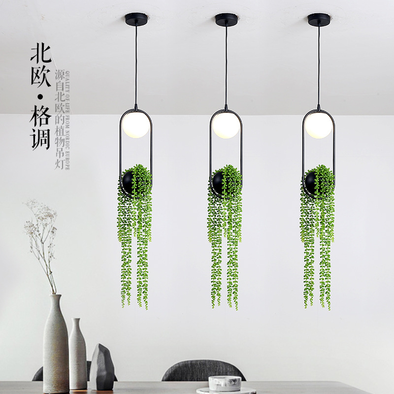 植物吊灯铁艺术个性创意花盆过道餐厅阳台空中花园LED吊灯