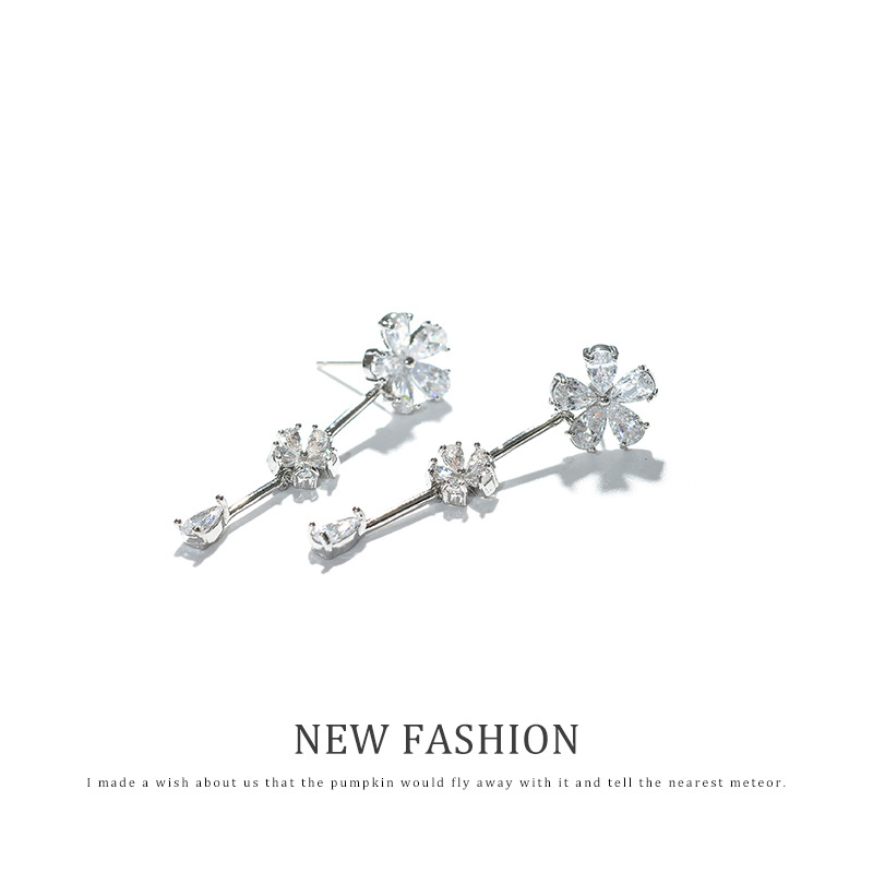 韩国气质简约清新人工锆石花朵耳钉女925银针耳环2019新款潮耳饰